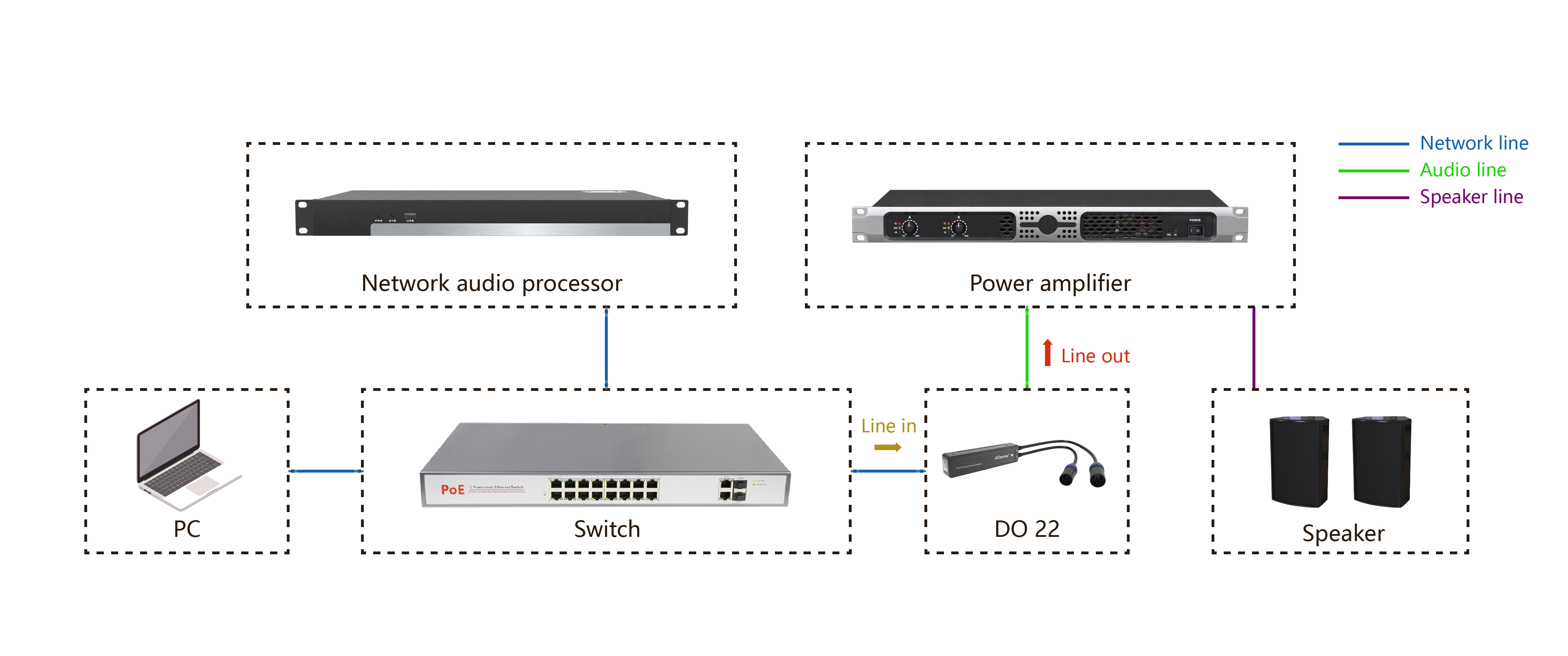 4. I -convert ang mga signal ng audio ng Dante Network sa mga analog na signal ng audio para sa output.