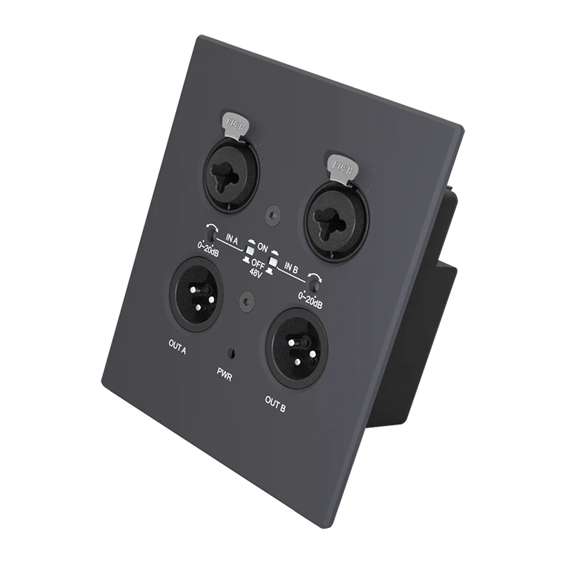 Ang FHBAVTEC® DANTE 2 CH Wall Plate Network Audio Interface (DP22) ay angkop para magamit sa mga silid ng kumperensya, mga multi-purpose hall, mga sinehan, disertasyon, mga sentro ng kombensyon, na may mga pre-nakatagong input at mga interface ng output. atbp.