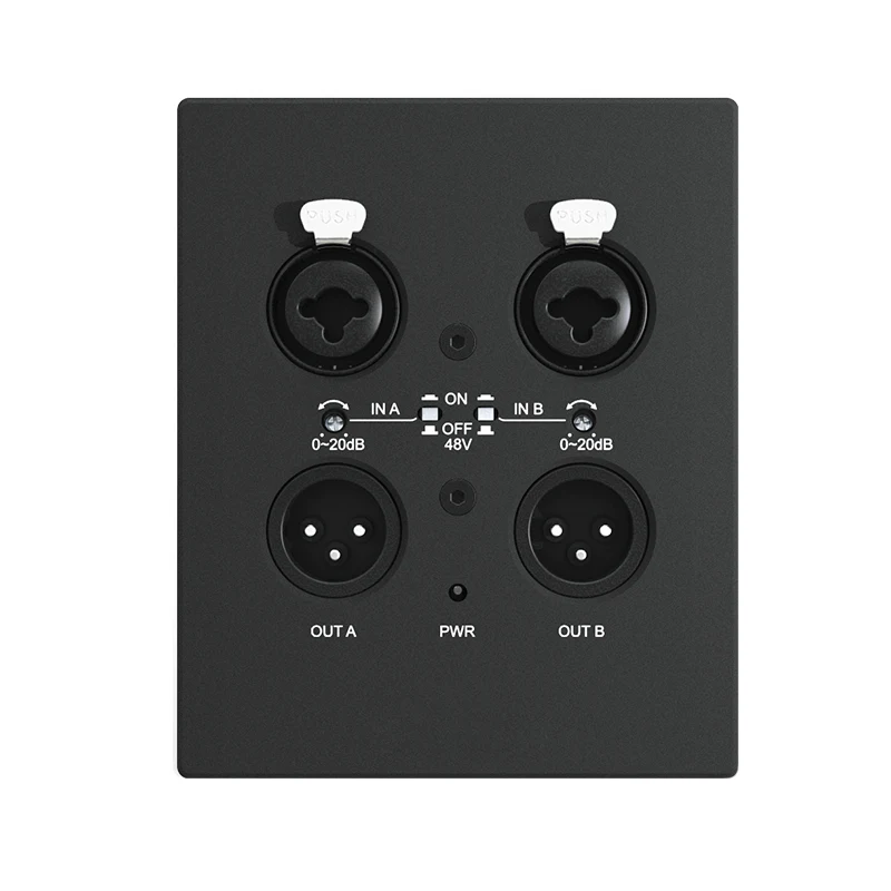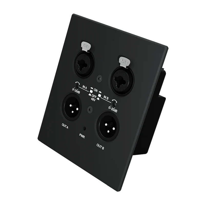 Ang FHBAVTEC ay isa sa nangungunang tatlong pro audio pabrika ng China. Ang FHBAVTEC® DANTE 2 CH Wall Plate Network Audio Interface (DP22) ay isa sa mga interface ng Dante Audio. Ang FHBAVTEC® DANTE 2 CH Wall Plate Network Audio Interface (DP22) ay maaaring OEM para sa customer, ang dami ng produksyon para sa isang modelo ay magiging 5000pcs bawat araw. Ang oras ng tingga ay 15days.